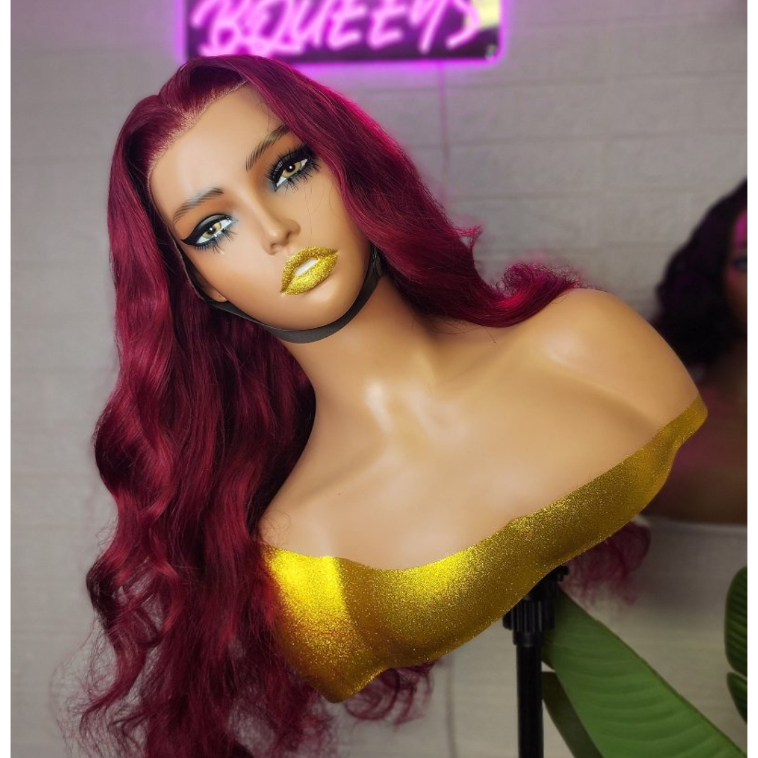 BQUEENS DEDE 24 Inches 13"x4" Body Wavy Wear & Go Glueless #99j Lace Frontal Wig-100% Human Hair